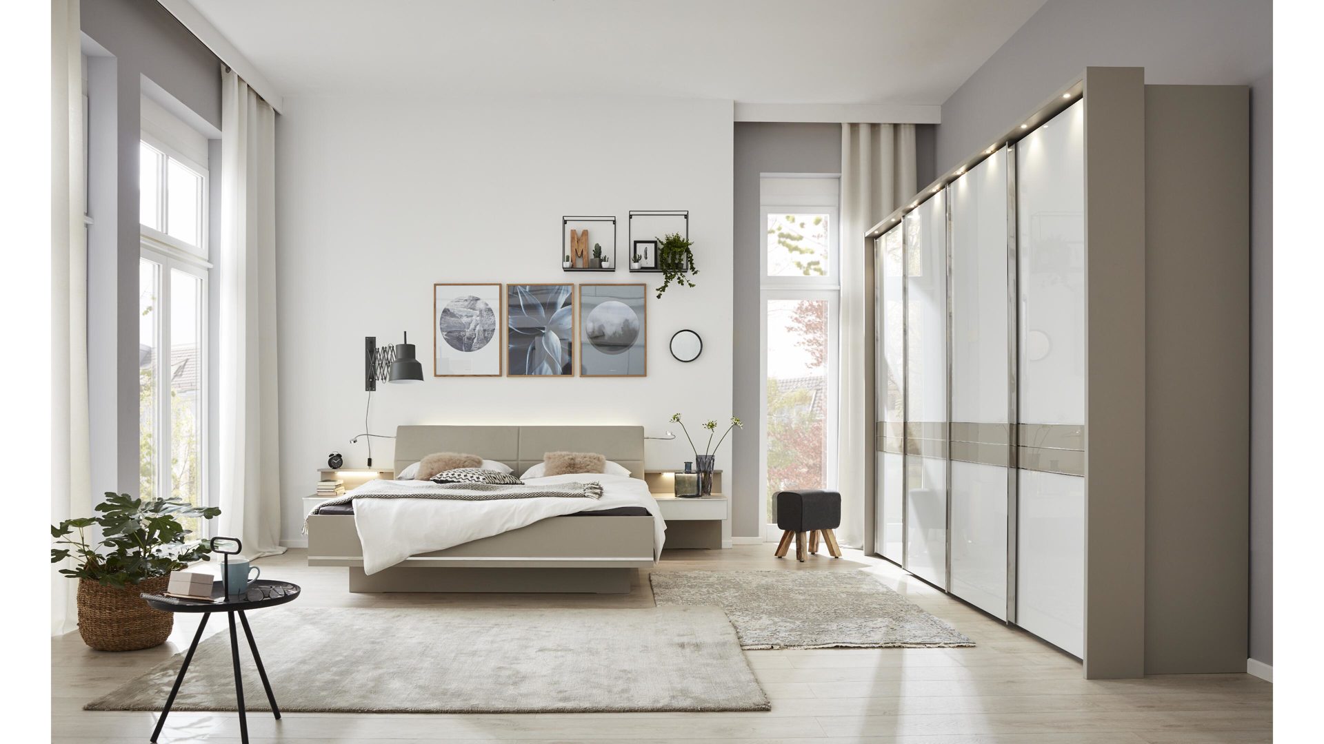 Interliving Schlafzimmer Serie 1009 Schlafzimmerkombination Weisse Glas Kieselgraue Kunststoffoberflachen Vierteili