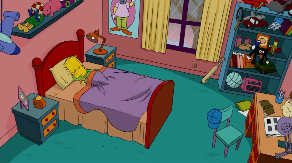 Cartoon Schlafzimmer Hintergrund Mit Baumen Im Fenster