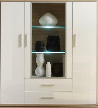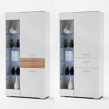 Vitrine Vitrinenschrank Hochglanz Weiss Und Sardegna Wohn