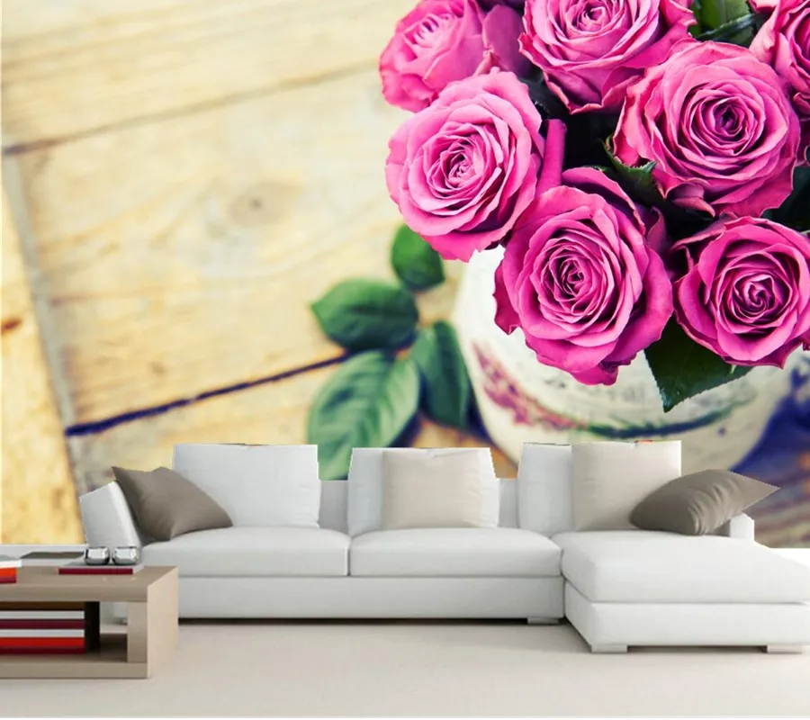 Us 13 34 54 Off Benutzerdefinierte Rosen Grossansicht Vase Blumen Wallpaper 3d Wandbild Esszimmer Sofa Tv Wand Schlafzimmer Moderne Tapeten
