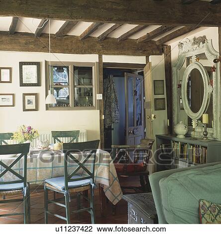 Blau Stuhle Und Kariert Tuch Auf Tisch In Hutte