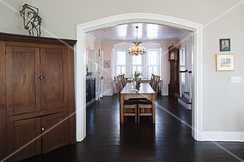 Eckschrank Vor Dem Durchgang Zum Esszimmer Mit Holztisch