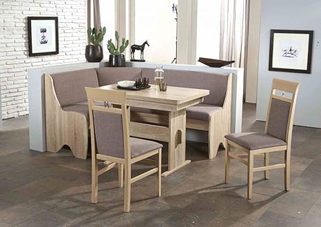Beauty Scouts Eckbankgruppe Rimini Sonoma Eiche Dekor Grau Braun Set 4 Teilig Truheneckbank Ausziehbarer Tisch Stuhle Buche Massiv Kuche Esszimmer